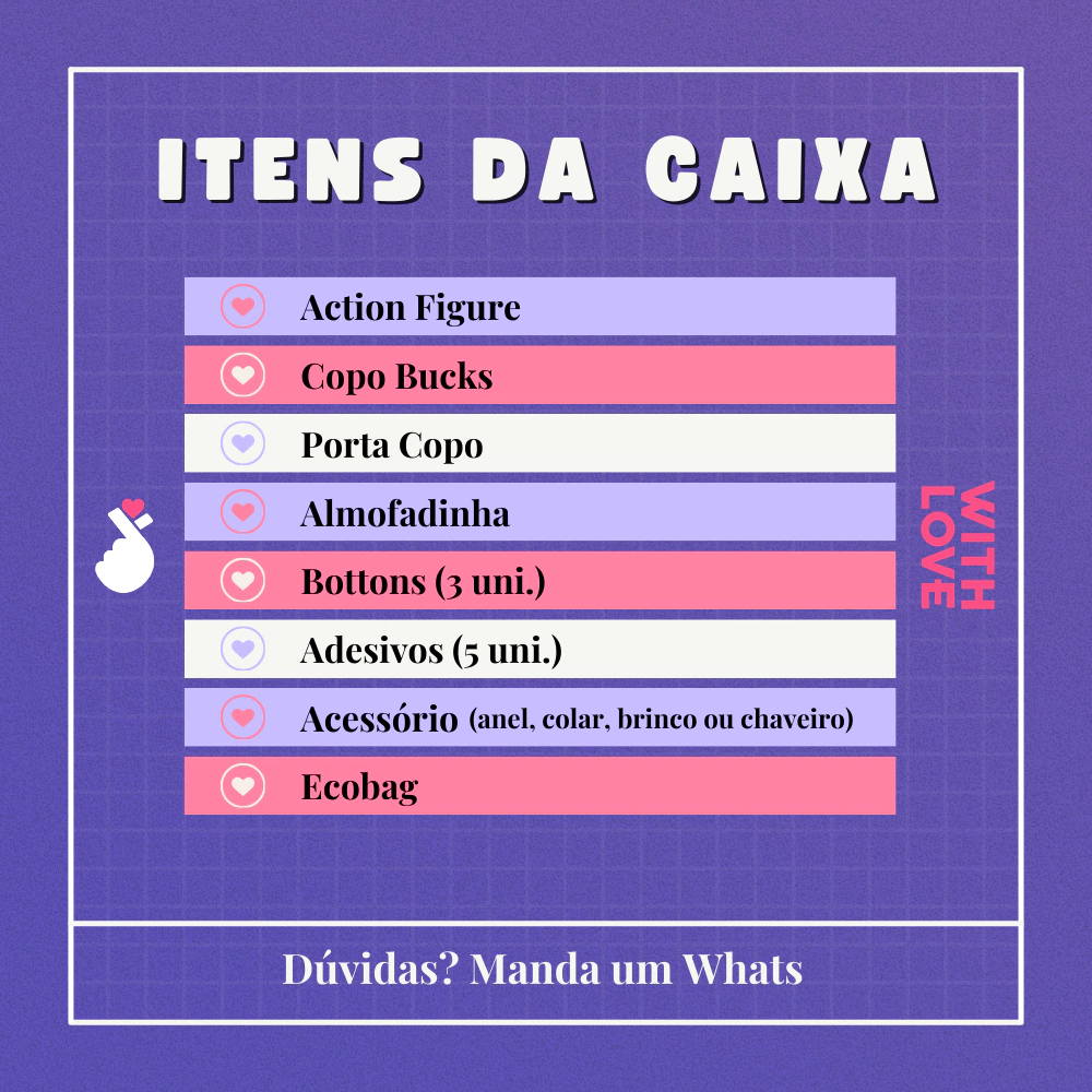 - Não é possível escolher personagem e/ou trocar algum produto, mas fica tranquilo que sempre deixamos a caixa com personagens variados, okay?